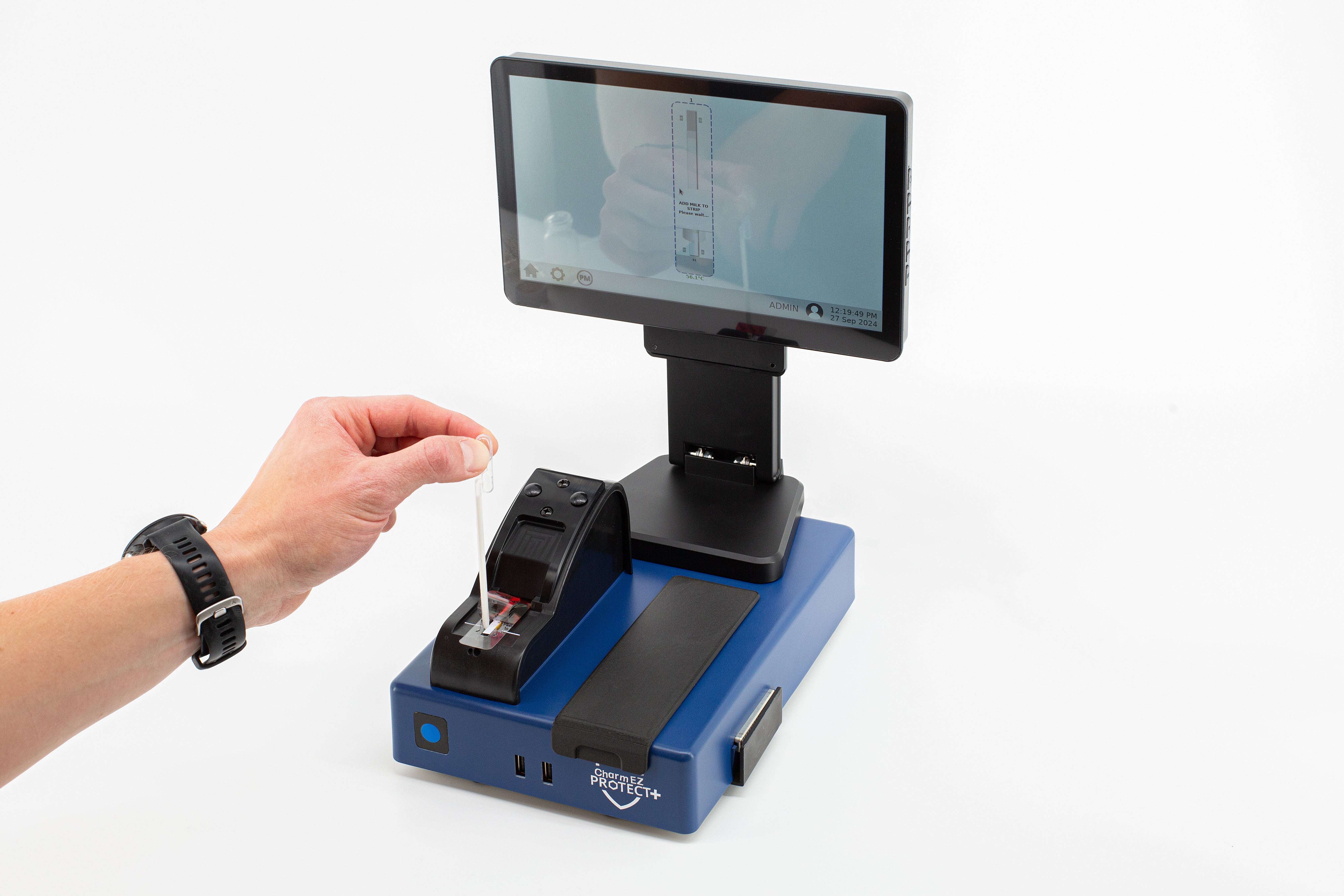 Das EZ Protect+ unterstützt mehrere Betriebsmodi. Im Modus „Inkubieren und Lesen“ wird der gesamte Prozess intern durchgeführt, um maximale Standardisierung zu gewährleisten. Im Modus „Nur Lesen“ können extern inkubierte Teststreifen ausgewertet werden. Die automatische Streifenerkennung verhindert eine fehlerhafte Testauswahl, während integrierte Kalibrierungs- und Leistungsprüfungen eine konstante Messgenauigkeit unterstützen.